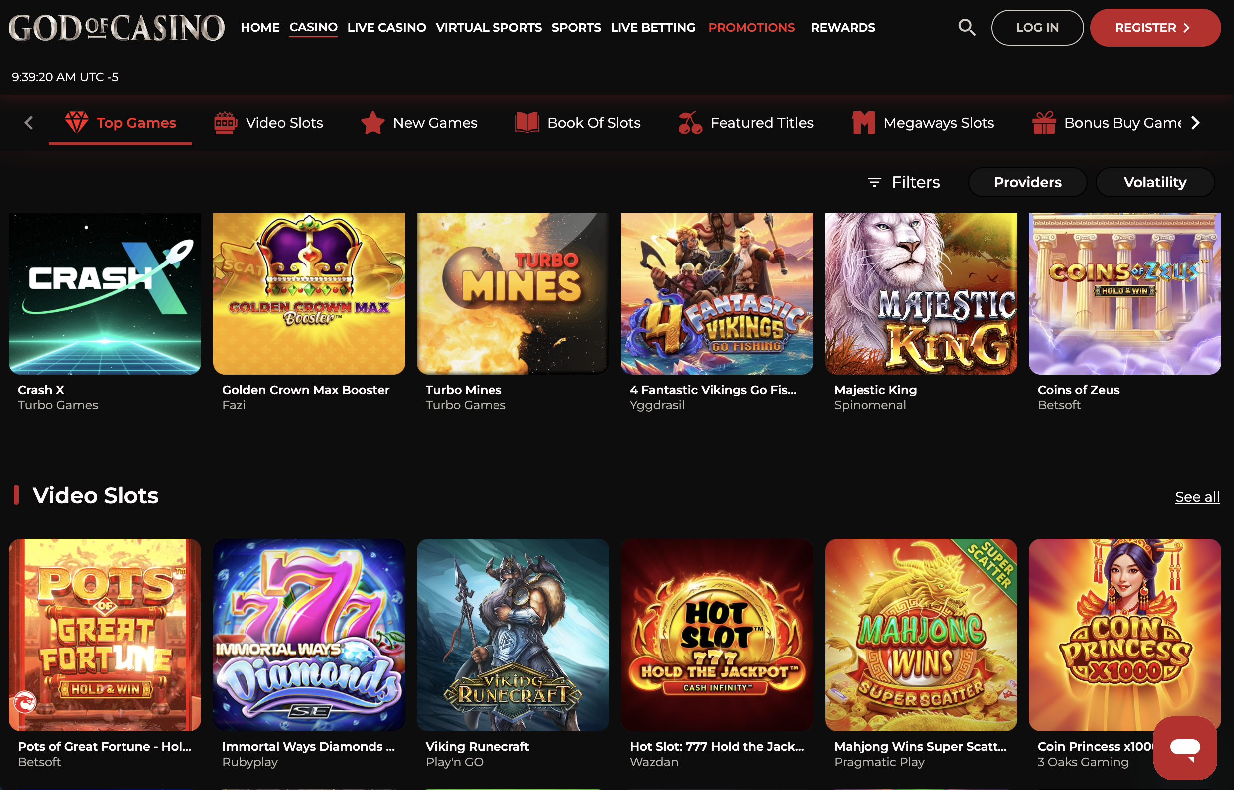 God of Casino doesn’t hold back when it comes to variety, packing in plenty of slots from all the big-name providers along with a solid mix of instant win games.